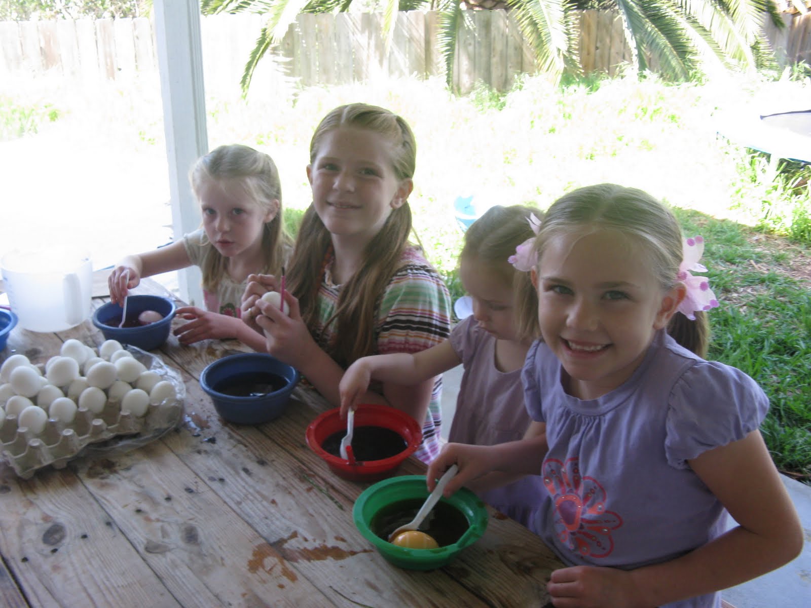 Gramma brought lots of boiled eggs for the grankids to color. they all had a great time.